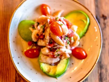 Dry scallops, avocado, tomatoes, cucumber, vinaigrette
