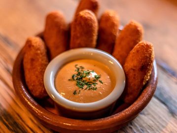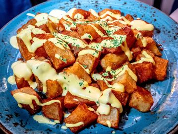 Potatoes, smoked paprika, tomato sauce, aioli sauce, chorizo