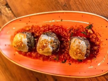 Lamb meatballs, preserved tomato sauce, manchego cheese
