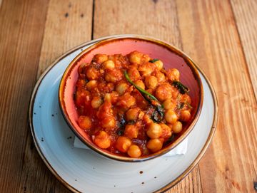 Chickpeas, spinach, Marcona almonds, tomato sauce
